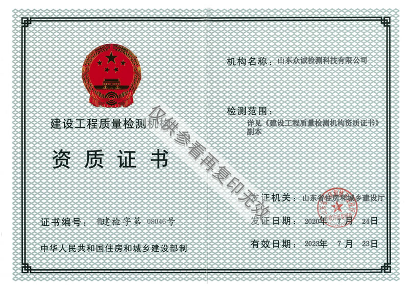 檢測資質(zhì)